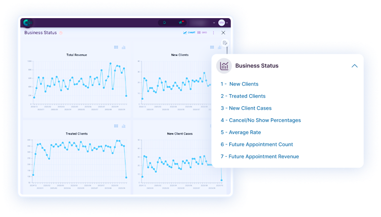 Yes. Dashboards are fully customizable to your clinic’s KPIs.