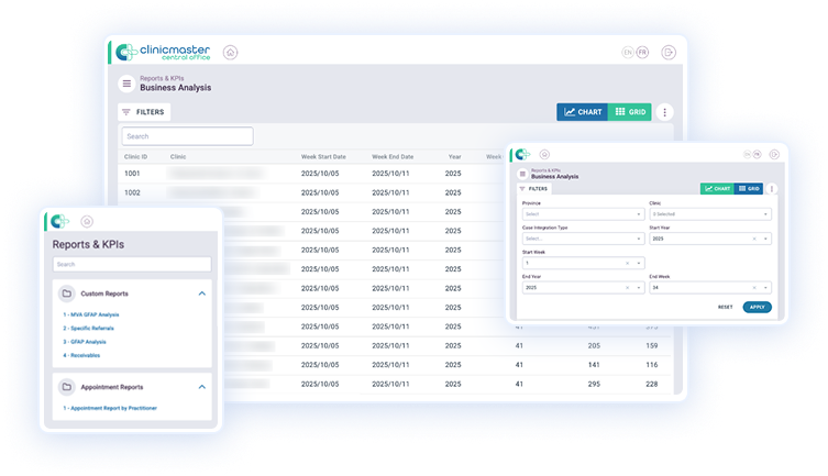Clinicmaster’s healthcare analytics software turns raw practice data into clear, actionable insights. With customizable dashboards, real-time reporting, and predictive tools, clinics gain visibility into anything and everything related to their practice: financial performance, patient flow, and operational efficiency. All in one secure, integrated platform.